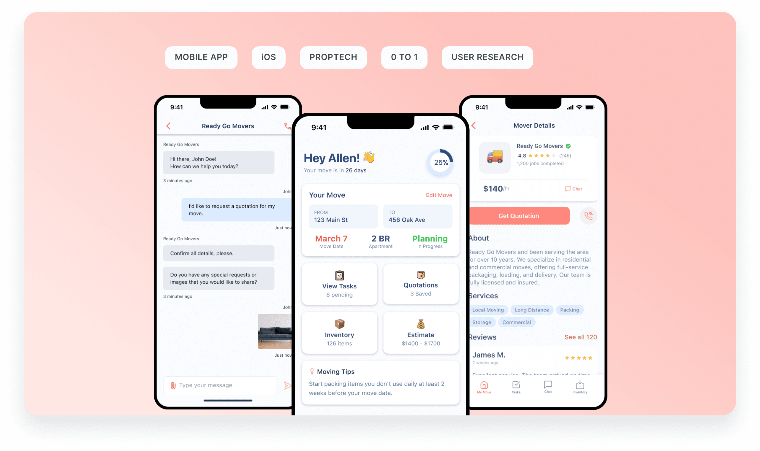 Designed an end-to-end iOS experience that simplifies relocation—from inventory tracking to mover selection—using native patterns and user-centered research.