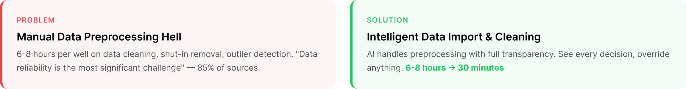 Senior reservoir engineers earn ~$150K annually. With 40% of their time wasted on manual data work, that's $60K per engineer per year