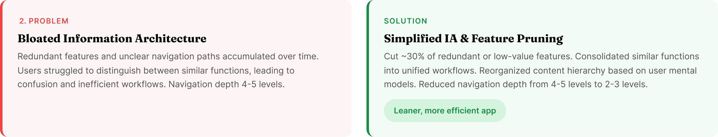 Feature bloat is real. Cutting 30% of redundant features didn't reduce functionality—it revealed the app's true value by eliminating noise and