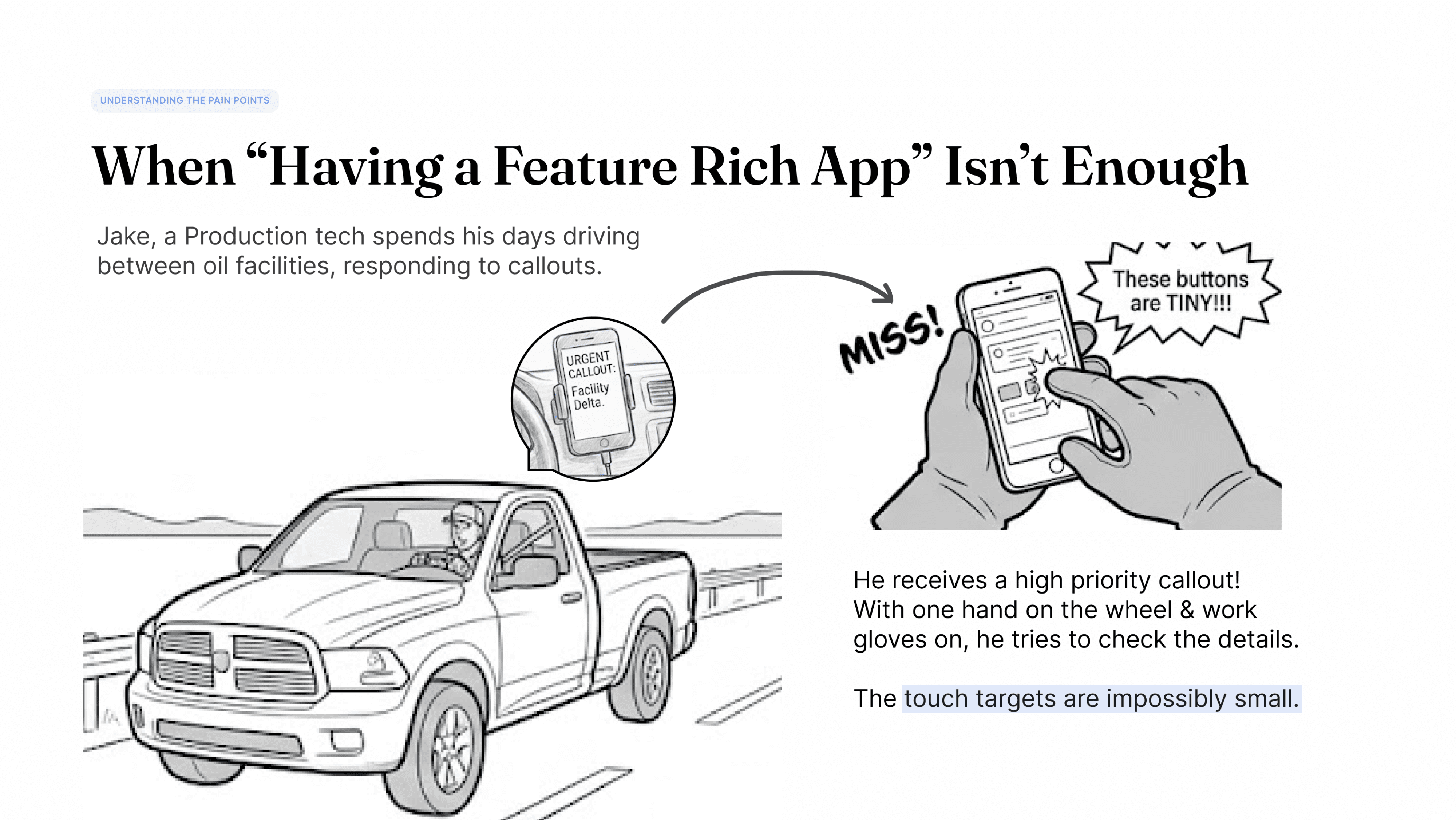 Designing for field operations requires firsthand understanding of environmental constraints—gloves, sunlight, one-handed use, 24/7