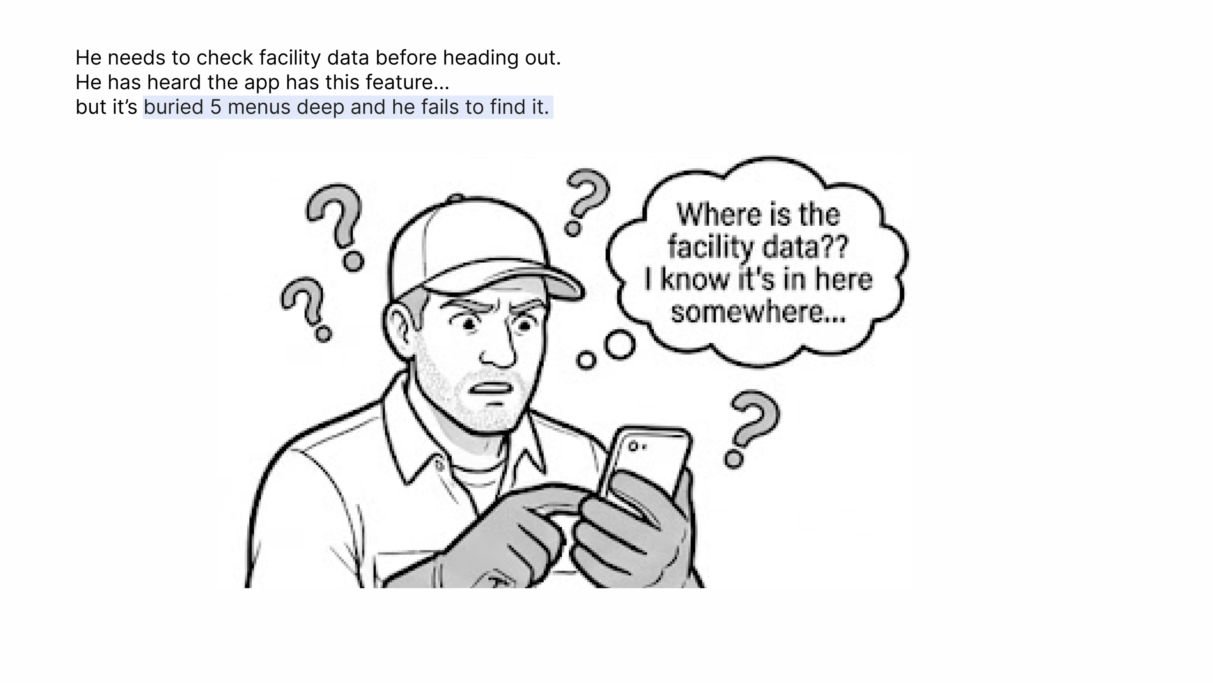 The Facilities feature was critical for field technicians but previously buried behind confusing navigation.