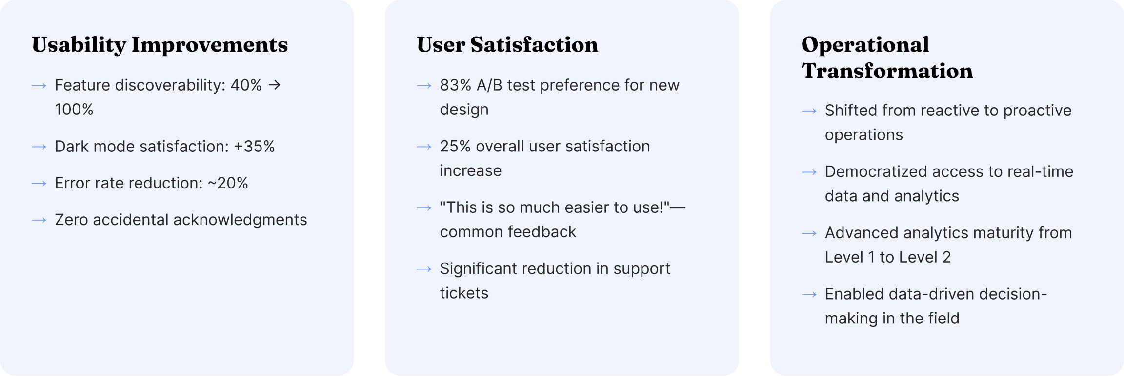 The redesign delivered significant, measurable improvements across adoption, efficiency,