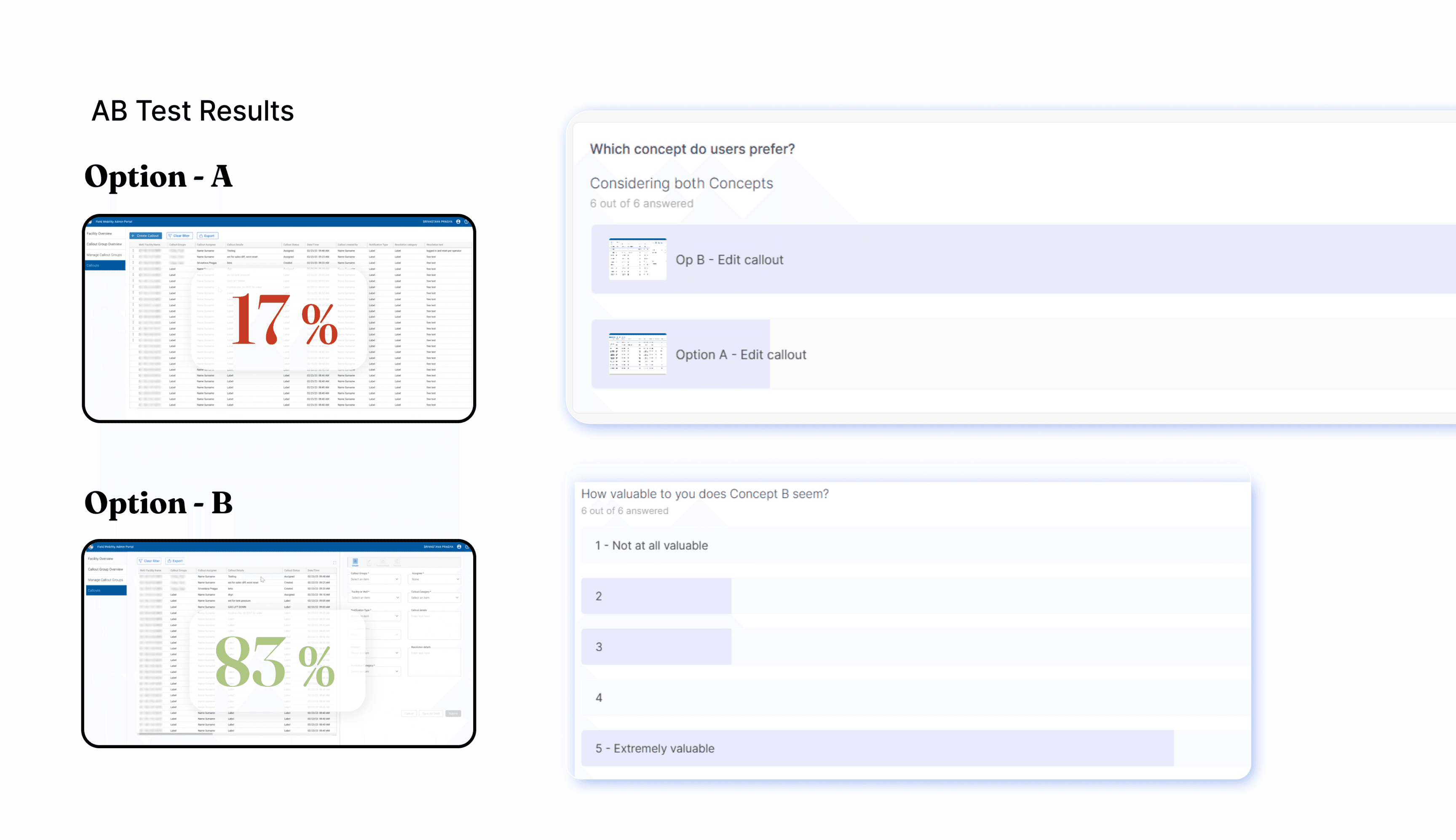 feature. Testing with CROs revealed 83% preference for the new design, validating the draft-saving