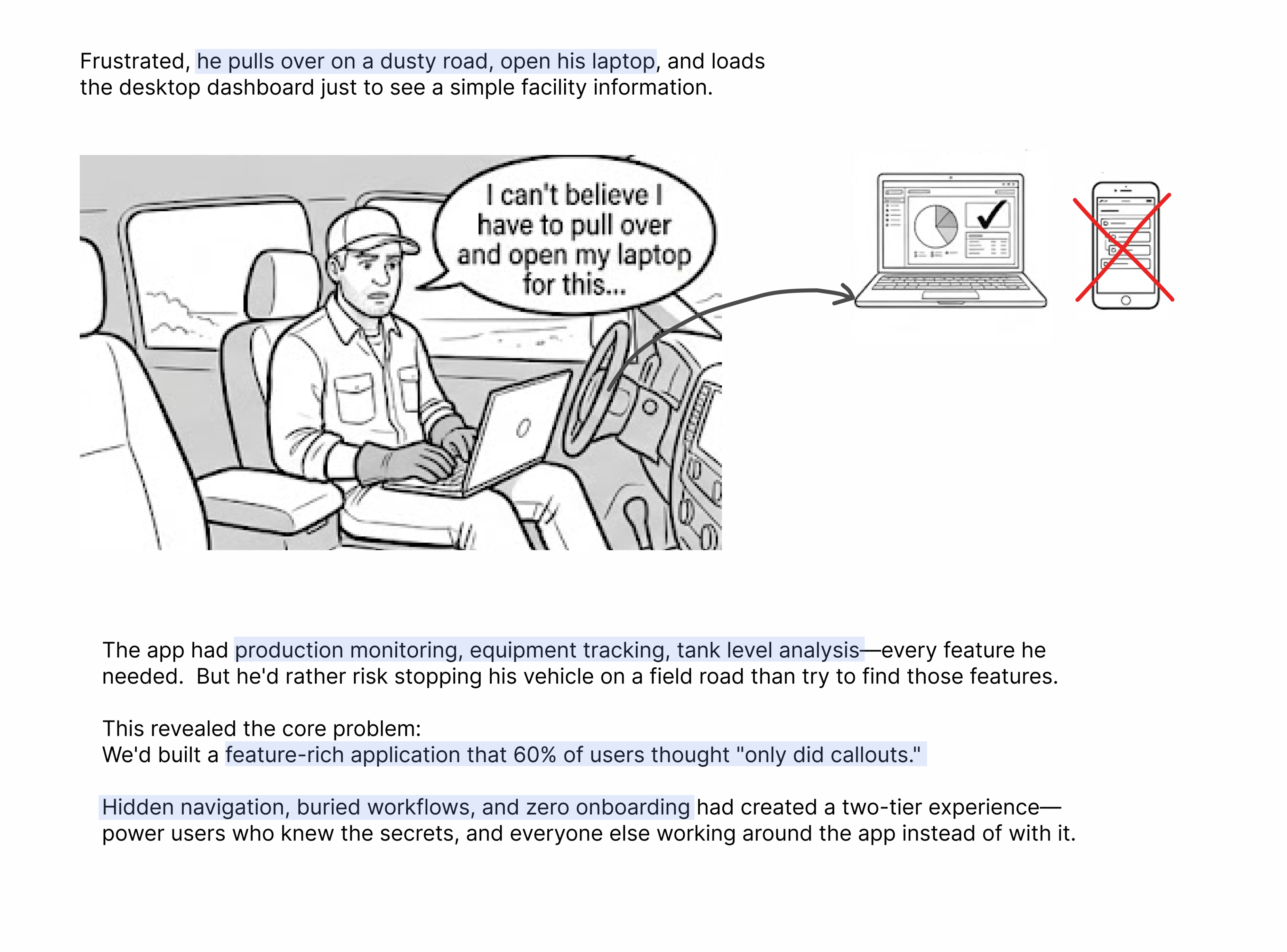 By redesigning a mission-critical app serving ~995 daily users in harsh field