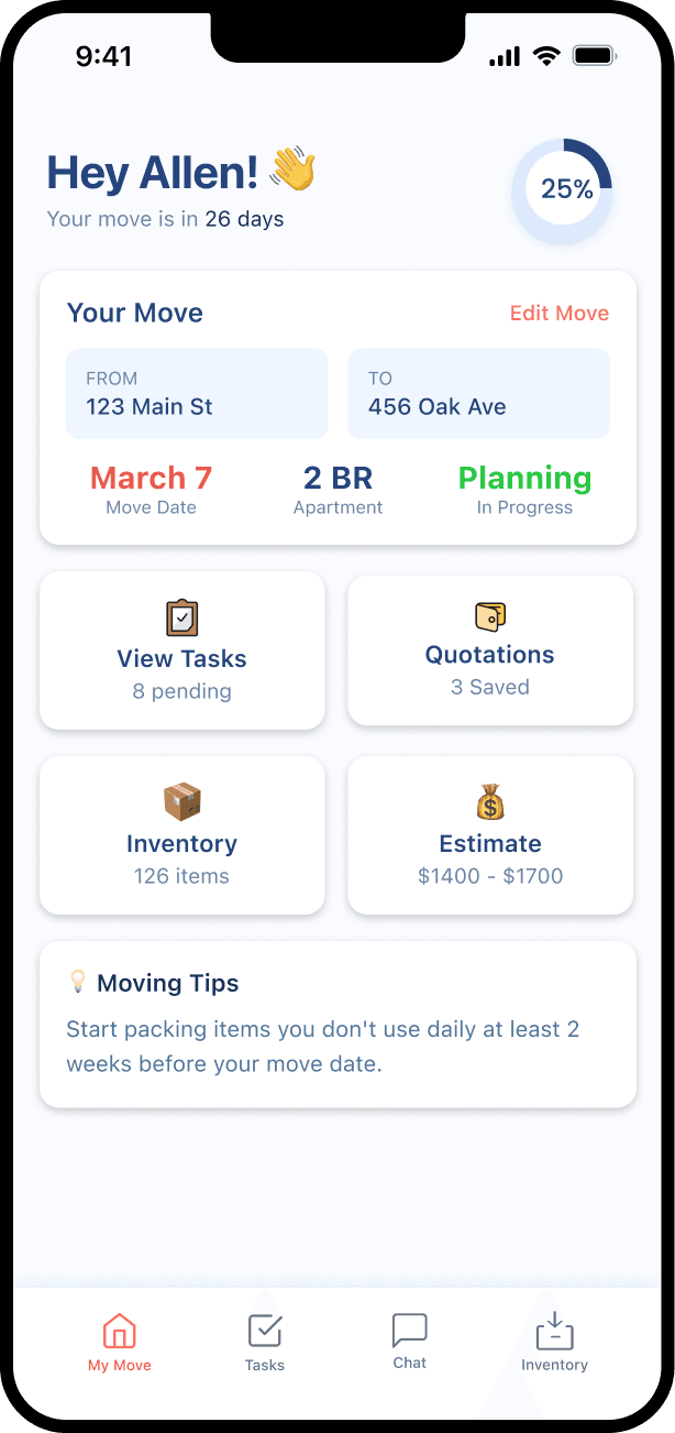 An end-to-end moving concierge app to help