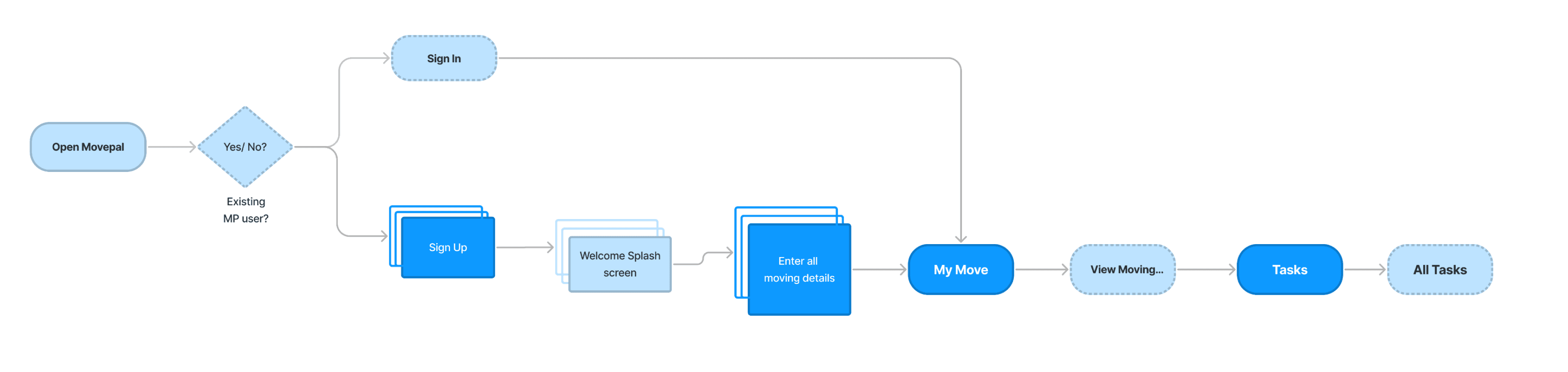 Evolution of screens through iteration (My Move)
